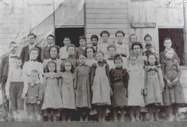 Second row left to right: 1. Samuel Forrest Shelton(teacher) 2. Arnie Frizzell Shelton(his wife) 3. Cora Keele Carter 4. Zenada "Nader" Eaton 5. Audra Shelton Eaton 6. Parthenia Eaton Crosslin. Also, Watson Shelton is the man on the far right.
