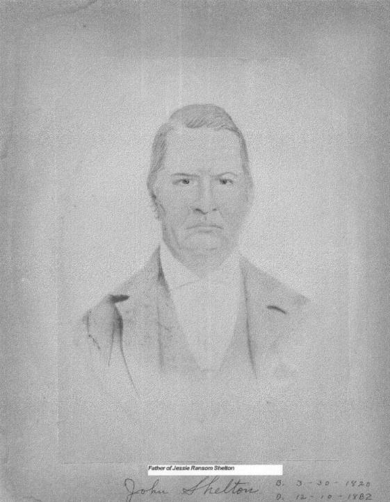 John Shelton (father of Jesse Ransom Shelton). John was born March 30, 1820, and died December 10, 1882.