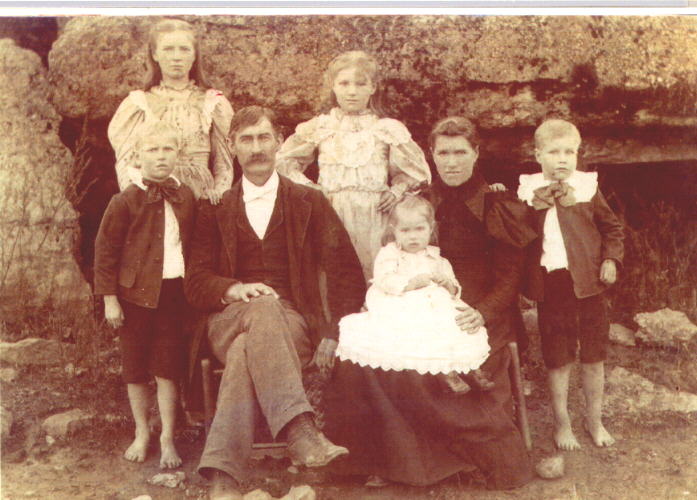 Front Row Left to Right: Clarence Frizzell, William Spenser Frizzell, baby Elsie Mae Frizzell(Blackburn), Mary Elizabeth "Betty" McMahan Frizzell(born in 1865: died in